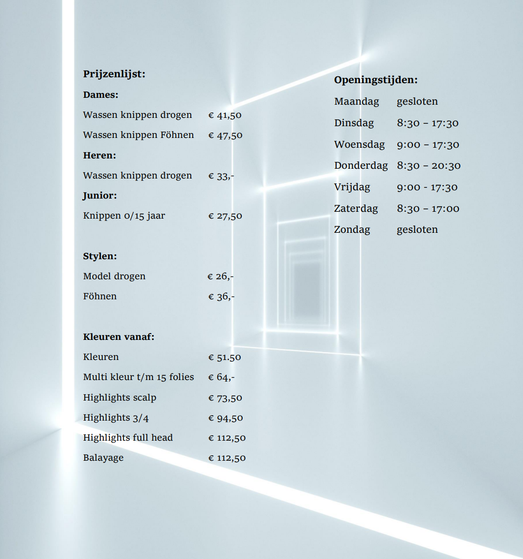 Prijslijst & Openingstijden
